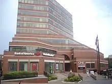 One City Center is an office building located in the Financial District in Monument Square, Portland, Maine. It is considered an icon of the Maine financial market. The building serves as the northern New England offices for Bank of America, and a Bank of America logo is featured at the building's highest point. It consists of 13 floors and features a 5-story atrium with a full service food court inside the building. The building was opened in 1987.