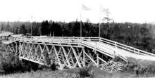 In response, the Rotary Clubs of Port Arthur and Duluth met to discuss a solution. As an international crossing, any bridge over the river would require federal approval from both governments. Both sides agreed that the approval process would be too slow, and decided to construct the bridge regardless. "The Outlaw" bridge was opened by a travelling motorcade on August 18, 1917, finally permitting travel between Ontario and Minnesota.[10] To the surprise of the Rotary Clubs, J. E. Whitson, Roads Commissioner of Northern Ontario, and Howard Ferguson, Minister of Lands, Forest and Mines, were present at the opening, and agreed to pay the $768,000 ($13 million in 2018[11]) bridge cost.[8] The bridge and the Canadian road approaching it fell under the jurisdiction of the Department of Highways (now the Ministry of Transportation) on April 1, 1937, and the Scott Highway became Highway 61 on October 6.[2] The Outlaw was rebuilt as a steel truss structure in 1934 following several accidents.[8]