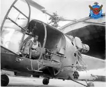 The helicopter was rigged to fire 14 rockets from pylons attached to its side and had a twin-barreled .303 Browning machine gun installed underneath the main helicopter pod, in addition to having 1-inch (25 mm) steel plate welded to its floor for extra protection.[39] Squadron Leader Sultan Mahmood, Flight Lieutenant Badrul Alam, and Captain Shahabuddin, all of whom later won the Bir Uttam award, operated the helicopter. Squadron Leader Sanjay Kumar Chowdhury and Flight Lieutenant Chandra Mohan Singla oF IAF was attached as trainers.[44]