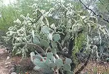 - Opuntia chlorotica – pancake prickly pear; native to southwest USA and the Sonoran and Mojave deserts; diploid (2n=22)