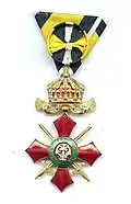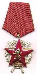 Awarded to low rank soldiers for exceptional actions in the face of remarkable danger. The second class of this award differs only from the first class by the way of the first class having an additional ribbon sewn across the ribbon suspension. | ||
