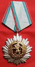 Awarded to foreign citizens for the establishment and strengthening of friendly international relations with The Republic Of Bulgaria. If awarded for Military relationships the award was presented with swords. Designed by V. Starchev and K. Damyanov. | |||