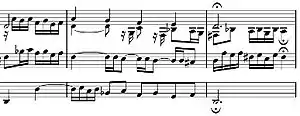 - Williams 2003, p. 586 Similar to the Bach motif but with different pitches, this is a four-note figure with the first and fourth notes having the same pitch, but the second and third notes higher and lower (or lower and higher); so named because the two lines joining the end notes and the middle notes form a cross.