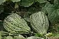 The plant, a cucurbit, is an annual herbaceous plant that branches and trails.[3] The stem is angular and hirsute (hairy) and 7 millimetres (1⁄5 in) in diameter.[3] The leaves are reniform (kidney-shaped) with 5-7 lobes.[3] It is andromonoecious (both bisexual and male flowers on same plant) with yellow flowers.[3]