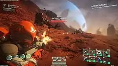 The game was released onto Steam's early access program on September 28, 2016, accompanied by a new trailer.[16] When it was released, the developers were still working on refining and broadening the gameplay.[17] In a press release, Brian McRae said the game's release was the "very beginning of this epic journey",[4] and noted their plans to continue to update and expand the game based on player's feedback.[4] Since the initial Early Access release, many features have been added to the game, including craftable spaceships.[18] One of the biggest additions to the game during early access so far was the "Prometheus II Unearthed" update, which was released on April 27, 2017. The update added a large amount of new content, including more explorable areas, more weapons, and more enemies.[19] In March, McRae told PC Gamer that around 85% of the content suggested by the community had not yet been added to the game.[18] He mentioned plans to add the ability to build "complex space stations" and possibly being able to build biospheres on a space station allowing players to grow food.