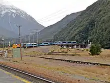 The Otira Tunnel is a railway tunnel on the Midland Line in the South Island of New Zealand, between Otira and Arthur's Pass. It runs under the Southern Alps from Arthur's Pass to Otira – a length of over 8.5 kilometres (5.3 mi). The gradient is mainly 1 in 33, and the Otira end of the tunnel is over 250 m (820 ft) lower than the Arthur's Pass end.