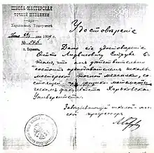 Struve entered the Kharkiv University in 1915, at the time of political unrest and wars in Russia. In the beginning of 1916, just having finished the first semester, he interrupted his studies and enlisted to a military artillery school in St. Petersburg. He passed an accelerated training program, and in February 1917, was sent to the Turkish front. After the Treaty of Brest-Litovsk was signed, Struve returned to Kharkiv for a year between spring 1918 and spring 1919 and completed a full university course. in June 1919, he received a certificate signed by the rector of Kharkiv University stating that Struve would stay with the University to prepare for professorship at the department of astronomy and geodesics. During that time, Struve also worked at the "workshop school of fine mechanics" and obtained a license of a workshop trainer. The workshop was organized by his father with the goal of creating traditions of astronomy engineers in Russia. Those were non-existent and foreign engineers were personally invited from abroad for high-quality mechanical work.[5][8]