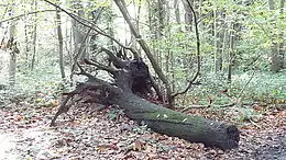 Oxleas Wood, Jack Wood and Shepherdleas Wood are a Site of Special Scientific Interest called Oxleas Woodlands, covering 72 hectares with oak, silver birch, hornbeam, coppice hazel, and a great number of fine samples of the Wild Service Tree.[8][9] A larger area including Eltham Common is designated a Local Nature Reserve called Oxleas/Shooters Hill Woodlands.[10][11]