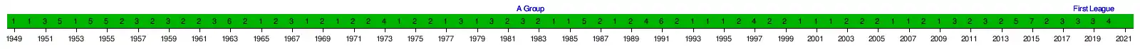 | 2010–11 | 2 | 30 | 23 | 3 | 4 | 67:24 | 72 | Quarter-finals | Did not participate | Did not participate | Group Stage |