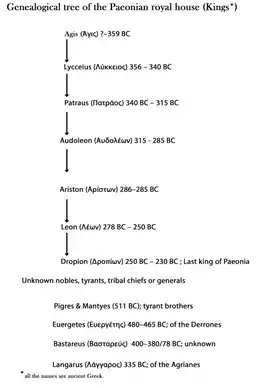 - Dropion: last known Paeonian king in 230 BC, of a dwindling kingdom.[36]