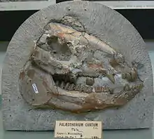 Palaeotheriidae is an extinct family of herbivorous perissodactyl mammals related to equids. They ranged across Europe and Asia from the Eocene through to the early Oligocene 55–33 Ma, existing for approximately 22 million years .