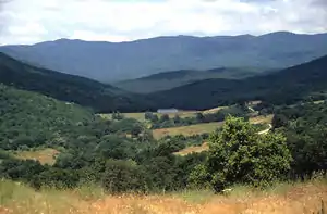 Panagyurishte Municipality is located in the Pazardzhik Province, western Bulgaria. It is one of the 11 municipalities in the province. Its territory is 598,5 km² being fourth in the province after the municipalities of Velingrad, Batak and Pazardzhik. The relief is mountainous and semi-mountainous and is part of Sredna Gora. There are rich copper deposits, with the biggest mines located in Asarel Medet, Elshitsa and Mina Radka. There are dense forests in which mushrooms and berries are abundant. Many animals inhabit these forest. The most important game species are red deer, roe deer, wild boar, doe and mouflon.