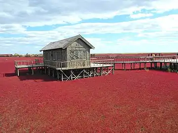 Panjin (simplified Chinese: 盘锦; traditional Chinese: 盤錦; pinyin: Pánjǐn) is a coastal prefecture-level city in central Liaoning province, People's Republic of China, situated on the northern shore of the Liaodong Bay. It borders Anshan to the east, Yingkou to the southeast, and Jinzhou to the west and north. It is the smallest city in both Liaoning and the entire Northeast China with an administrative area of 4,071 square kilometres (1,572 sq mi), and Liaoning's least populous city with a population of 1.39 million people.