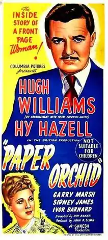Paper Orchid is a 1949 British crime film directed by Roy Ward Baker, with a script written by Val Guest. It featured Hugh Williams, Hy Hazell and Garry Marsh, and was based on a novel by Arthur La Burn.[1] It featured an early film appearance by Sid James, who later found success through the Carry On series.