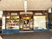 In 1925 Zacharias Simos employed H. & E. Sidgreaves, the shop-fitting firm responsible for the design of Washington H. Soul's Sydney pharmacies, to convert the interior of the cafe premises on classical (Art Deco) lines, along with local architect Harry Lindsay Blackwood.[12] A soda fountain, of the finest Moruya marble, and booths of Queensland maple were installed as were the timber-panelled walls decorated with alabaster friezes depicting classical Greek figures. The fine and intact leadlight shopfronts which characterise the building were probably included in this work and have become an important part of the architectural character of Katoomba Street. The street contains many other fine examples of glazed shopfronts from the 1920s and it has been suggested that together they may be the largest extant collection of 1920s leadlight shopfronts in NSW and comparable to Canowindra in the central west of NSW.[13][1]