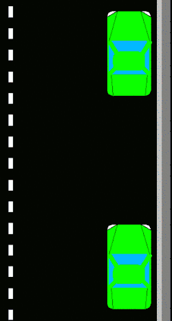 Parallel parking is a method of parking a vehicle parallel to the road, in line with other parked vehicles. Parallel parking usually requires initially driving slightly past the parking space, parallel to the parked vehicle in front of that space, keeping a safe distance, then followed by reversing into that space. Subsequent position adjustment may require the use of forward and reverse gears.