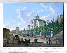 The Pashkov House was erected in 1784—1786 by a Muscovite nobleman, Pyotr Pashkov. He was a retired Captain Lieutenant of the Guards Semenovsky Regiment and the son of Peter the Great's batman.[1] The building is believed to have been designed by Vasili Bazhenov. Throughout the 20th century Bazhenov's authorship was disputed, since no written evidence has survived the ages, and the only thing that serves as a proof is oral tradition and similarities to Bazhenov's other buildings.