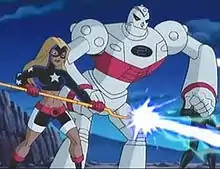 S.T.R.I.P.E. (short for Special Tactics Robotic Integrated Power Enhancer) is a fictional superhero in the DC Comics Universe. S.T.R.I.P.E. is a powered armor suit invented and worn by Patrick "Pat" Dugan, the former adult sidekick to teenage superhero Sylvester Pemberton, the Star-Spangled Kid.[1] "Stripesy", as he was originally called, is a gifted mechanic who built the Star Rocket Racer, a bubble-topped limousine with the functions of a rocket and helicopter. Together, they were members of the Seven Soldiers of Victory and the All-Star Squadron. Stripesy was created by Jerry Siegel (co-creator of Superman) and Hal Sherman, and first appeared in Star Spangled Comics #1 (October 1941).[2]