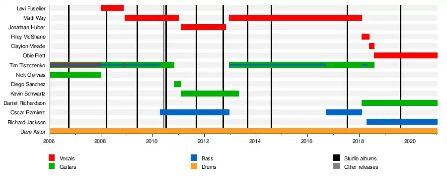 - Tim Tiszczenko – guitar (2006–2010, 2012–2018), bass (2006–2008, 2012–2016, 2018), vocals (2006–2008, 2008)