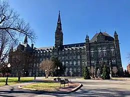 During Healy's presidency, the Law School saw significant growth, driven in large part by the District of Columbia Bar's decision to require new applicants to the bar to have completed three years of formal legal education.[36] In the early 1880s, the school relocated twice within Downtown Washington, but was financially unable to move to the university's Georgetown campus as it desired.[37]