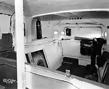 The engines were fitted with mufflers on the transom (extreme rear of boat) to direct the exhaust underwater, which had to be bypassed for anything other than idle speed. The mufflers were both to mask the engines' noise from the enemy and to improve the crew's chance of hearing enemy aircraft.[4]