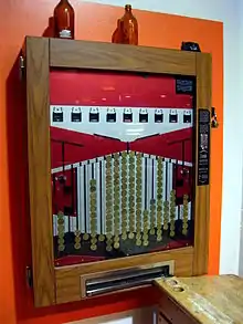 In traditional models, also the supply of coins available for paying winnings is visible through the transparent front panel. This way the player can estimate whether there is enough money in the machine to pay potential winnings.