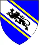 The Kekewich arms are: Argent, two lions passant guardant in bend sable between two bendlets gules.[41]