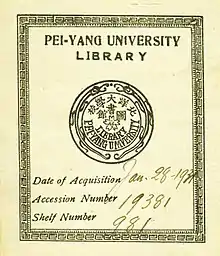 However, scholars who specialize in the history of Peiyang University have verified based on historical data. In fact, when Peiyang University was founded, the initial names of the schools were Peiyang University(北洋大学堂), Peiyang University(北洋大学堂) and its English “Pei-yang-ta-hsiieh-t'ang" appeared in the 1895 Peiking Tientisn Times and Zhili Province Times. Because the school used the "Tianjin Chinese and Western School Constitution" approved by Emperor Guangxu, it caused misinformation. [2]