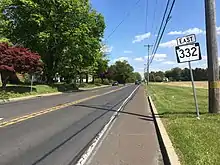 What would become PA 332 between Newtown and Yardley was designated as part of Legislative Route 252 in 1911, which continued southeast from Yardley to Morrisville.[6] In 1928, PA 332 was designated to run from PA 263 in Hatboro east to Ivyland, with the portion of road between Newtown and Yardley designated as part of PA 532. Between Ivyland and Newtown, the road remained an unnumbered road that was paved with the exception of a portion west of Newtown.[2] PA 332 was extended from Ivyland east to end at PA 113 (State Street) in Newtown in 1937, with the entire route paved by 1940. PA 332 entered Newtown from the west on Newtown-Richboro Road.[7][8] In 1943, PA 332 within Warminster Township was widened as part of a military access road to Naval Air Development Center, Johnsville, costing $93,789.[9][10]