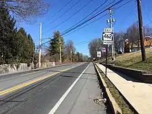 The state acquired the Philadelphia and Lancaster Turnpike in the beginning of the 20th century.[6] Following the passage of the Sproul Road Bill in 1911, current PA 462 was designated as Legislative Route 126 west of York, Legislative Route 128 between York and Lancaster, and Legislative Route 215 east of Lancaster.[9] In 1913, this portion of road became part of the Lincoln Highway, an auto trail that ran from San Francisco to New York City.[10] The Lincoln Highway within Pennsylvania was designated as PA 1 in 1924.[11][12] With the creation of the U.S. Highway System in 1926, US 30 was designated concurrent with PA 1 on the Lincoln Highway west of Philadelphia.[12][13] The concurrent PA 1 designation was removed from US 30 in 1928.[14][15][16]
