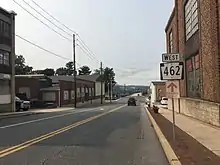 Pennsylvania Route 462 (PA 462) is a 32-mile-long (51 km) east–west running local state route in York and Lancaster counties in central Pennsylvania. The western terminus is west of York, and the eastern terminus is east of Lancaster. At both ends, PA 462 terminates at U.S. Route 30 (US 30), which follows a mostly freeway alignment parallel to the north between York and Lancaster. The route heads east into York, where it follows the one-way pair of Market Street eastbound and Philadelphia Street westbound. In York, PA 462 runs concurrent with PA 74 and crosses Interstate 83 Business (I-83 Bus.). East of York, the route becomes a multilane road that has an interchange with I-83 and crosses PA 24. PA 462 continues east through Hallam to Wrightsville and passes through that town before it crosses the Susquehanna River and runs through Columbia. East of here, the route continues through Mountville before reaching the city of Lancaster. In Lancaster, PA 462 is routed on the one-way pair of King Street eastbound and Walnut Street westbound, with the westbound direction concurrent with PA 23. The route crosses US 222/PA 272 and northbound PA 72 in Lancaster. East of Lancaster, PA 462 becomes a multilane road again and continues to its eastern terminus.