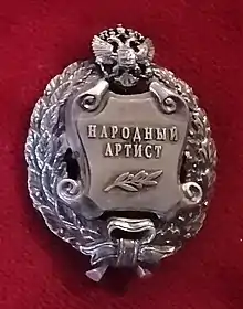 People's Artist of the Russian Federation (Russian: Народный артист Российской Федерации, Narodniy artist Rossiyskoy Federatsii), also sometimes translated as National Artist of the Russian Federation, is an honorary and the highest title awarded to citizens of the Russian Federation, all outstanding in the performing arts, whose merits are exceptional in the sphere of the development of the performing arts (theatre, music, dance, circus, cinema, etc.).[1]