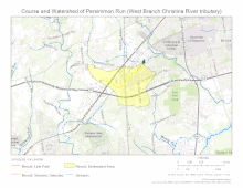 Course and Watershed of Persimmon Run (West Branch Christina River tributary)
