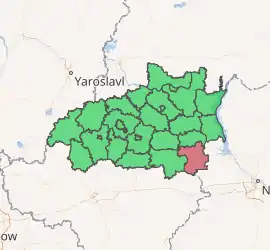 Pestyakovsky District (Russian: Пестяковский райо́н) is an administrative and municipal district (raion), one of the twenty-one in Ivanovo Oblast, Russia.[1] It is located in the southeast of the oblast. The area of the district is 1,100 square kilometers (420 sq mi). Its administrative center is the urban locality (a settlement) of Pestyaki.[1] Population: 7,160 (2010 Census);[2] 8,629 (2002 Census);[7] 9,660 (1989 Census).[8] The population of Pestyaki accounts for 56.3% of the district's total population.[2]