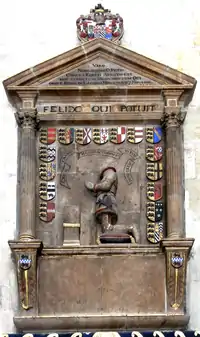 Carew was buried in Waterford Cathedral, on the south side of the chancel. The Cathedral was rebuilt in the 18th century, and nothing remains of his grave. There is, however, a mural monument to him in Exeter Cathedral, erected by John Hooker: it was originally set up in the north choir aisle, but was moved to the south transept in 1805.[1][7][8]