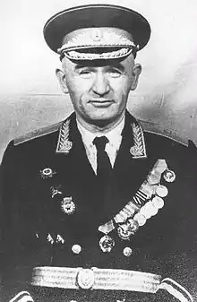 In 1939, he graduated with honors from the Kuybyshev Military Engineering Academy and the Military Academy of the General Staff of the Armed Forces of Russia.[9] He took part in the battles of Khalkhin Gol, against the Japanese on the Manchurian border in 1939, and in the Second World War.[10] He commanded troops in initial battles following 22 June 1941.[11] During the war, he also commanded an infantry division in the Baltic for three years.[12]
