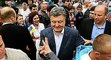 Petro Oleksiyovych Poroshenko (Ukrainian: Петро́ Олексі́йович Пороше́нко, pronounced [peˈtrɔ olekˈs⁽ʲ⁾ijowɪtʃ poroˈʃɛnko]; born 26 September 1965) is a Ukrainian businessman and politician who served as the fifth President of Ukraine from 2014 to 2019.