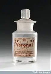 In 1903, Hermann Emil Fischer and Joseph von Mering disclosed their discovery that diethylbarbituric acid, formed from the reaction of diethylmalonic acid, phosphorus oxychloride and urea, induces sleep in dogs. The discovery was patented and licensed to Bayer pharmaceuticals, which marketed the compound under the trade name Veronal as a sleep aid beginning in 1904. Systematic investigations of the effect of structural changes on potency and duration of action led to the discovery of phenobarbital at Bayer in 1911 and the discovery of its potent anti-epileptic activity in 1912. Phenobarbital was among the most widely used drugs for the treatment of epilepsy through the 1970s, and as of 2014, remains on the World Health Organizations list of essential medications.[8][9] The 1950s and 1960s saw increased awareness of the addictive properties and abuse potential of barbiturates and amphetamines and led to increasing restrictions on their use and growing government oversight of prescribers. Today, amphetamine is largely restricted to use in the treatment of attention deficit disorder and phenobarbital in the treatment of epilepsy.[10][11]