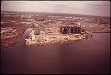 Rutgers University ecology scientists have documented the bizarre transformations to Piles Creek marine species caused by contamination and toxicity.[3][4] The creek was extended as part of wetlands mitigation project for the expansion of the New Jersey Turnpike.[5] GAF Materials Corporation was once located along the creek.[6][7] Public Service Enterprise Group (PSE&G) opened a solar farm on a brownfield site along the shore of the creek in 2014.[8][9]