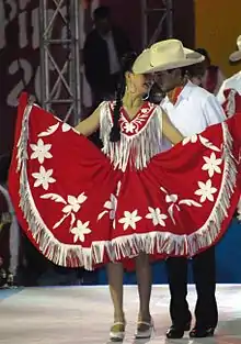 Pinal de Amoles, like the rest of the Sierra Gorda, has been classified as the far west of the La Huasteca region. Huapango is a tradition in the Sierra Gorda and the people here identify themselves as part of the La Huasteca region, according to Jorge Enrique Resendíz Martínez, municipal president of Pinal de Amoles.[18] This Huasteca influence is best seen in the tradition of Huapango music and dance, which is strongest here and in other Sierra Gorda communities such as Xichú and San Joaquín, where there are festivals dedicated to it.[19] Huapango musicians from Pinal de Amoles are noted for their ability to improvise melodies and lyrics,[1] but the main event for the year is the Concurso Nacional de Bailes de Huapango held each year in the municipal seat in March.[18]