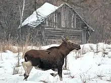 The reserve hosts many rare and endangered species, which thrive there thanks to the virtual absence of humans. They include European bison, Przewalski horse, Moose, Brown bear, Golden eagle, and White-tailed eagle. It is home to the world's largest population of the European pond turtle. According to PSRER administration, there are 7 reptile, 11 amphibian, 46 mammal, 213 bird and 25 fish species. Of those, 70 are listed in the International Red Book and the Red Book of the Republic of Belarus. Flora includes 1251 registered plants, which is more than two-thirds of the flora of the country, and 18 of the plant species are listed in the Red Book.[3] It was found that voles have higher rates of cataracts, useful populations of bacteria on the wings of birds in the zone are lower, partial albinism is common among barn swallows, cuckoos have become less common. Serious animal mutations, though, happened only right after the accident.[4]