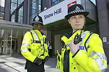 In 1863, the Metropolitan Police were issued with the distinctive custodian helmet, and in 1884 they switched to the use of whistles that could be heard from much further away.[53] The Metropolitan Police became a model for the police forces in many countries, including the United States and most of the British Empire.[54][55] Bobbies can still be found in many parts of the Commonwealth of Nations.