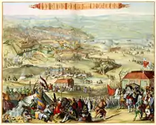 On 19 December 1674, a Swedish army led by Carl Gustav Wrangel advanced into the Brandenburgian Uckermark, taking Löcknitz, and into Brandenburgian Pomerania taking Stargard.[26] In May, further advances into the Uckermark followed. Brandenburgian Farther Pomerania was occupied by Sweden and had to house Swedish garrisons. The war turned on June 18, when the Swedish army was defeated at Fehrbellin, and retreated to Swedish Demmin. In 1675, most of Swedish Pomerania was taken by the Brandenburgian, Austrians, and Danish forces. In December 1677, the elector of Brandenburg captured Stettin. Stralsund fell on October 11, 1678. Greifswald, Sweden's last possession on the continent, was lost on November 8.[27]