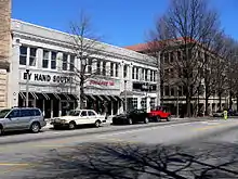 Ponce de Leon Avenue begins at Spring Street at the south edge of Midtown Atlanta, though prior to the construction of the Downtown Connector, it started a block further west at Williams Street (across from Georgia Tech, one block east of Bobby Dodd Stadium)[5] It passes West Peachtree Street and then Peachtree Street, the city block which has the BellSouth Building (now AT&T) and the historic Fox Theatre on the north side of the street. At the next two intersections, it takes multiple numbered routes from North Avenue, which runs one block to the south and forms the boundary between Midtown and downtown Atlanta. Via one-way Juniper Street southbound and Piedmont Avenue (formerly part of Georgia 237) northbound, it gets U.S. 29 north, U.S. 78 east, U.S. 278 east, and Georgia 8 east.