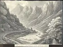 Pont Aberglaslyn is a bridge over the Afon Glaslyn and the surrounding hamlet, located near Beddgelert and Nantmor in Gwynedd, north-west Wales. A well-known beauty spot, according to Peter Bishop it was "one of the most visited sites in north Wales" at the end of the eighteenth century; an 1883 guidebook wrote that it "has occupied the artist's pencil perhaps more than any other".[1][2]