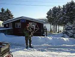 ![]() A radio scientist from Stanford University at the Port Lions post office. | |