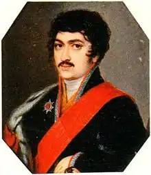 Teimuraz Bagrationi (Georgian: თეიმურაზ ბაგრატიონი) otherwise known as Tsarevich Teimuraz Georgievich (Russian: царевич Теймураз Георгиевич) (April 23, 1782 – October 25, 1846) was a Georgian royal prince (batonishvili) and scholar primarily known as an author of the first critical history in Georgian as well as for his work to popularize interest in the history and culture of Georgia and preserve its treasures.