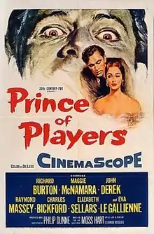 Prince of Players is a 1955 20th Century Fox biographical film about the 19th century American actor Edwin Booth. The film was directed and produced by Philip Dunne from a screenplay by Moss Hart, based on the book by Eleanor Ruggles. The music score was by Bernard Herrmann and the cinematography by Charles G. Clarke. The film was made in CinemaScope and in DeLuxe Color.