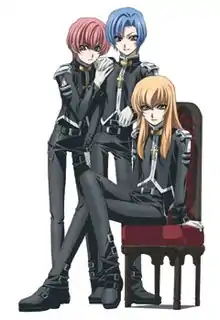 ![]() Cast of Princess Princess, from left to right, Mikoto, Toru and Yuujirou | |