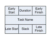 By itself, the network diagram pictured above does not give much more information than a Gantt chart; however, it can be expanded to display more information. The most common information shown is: